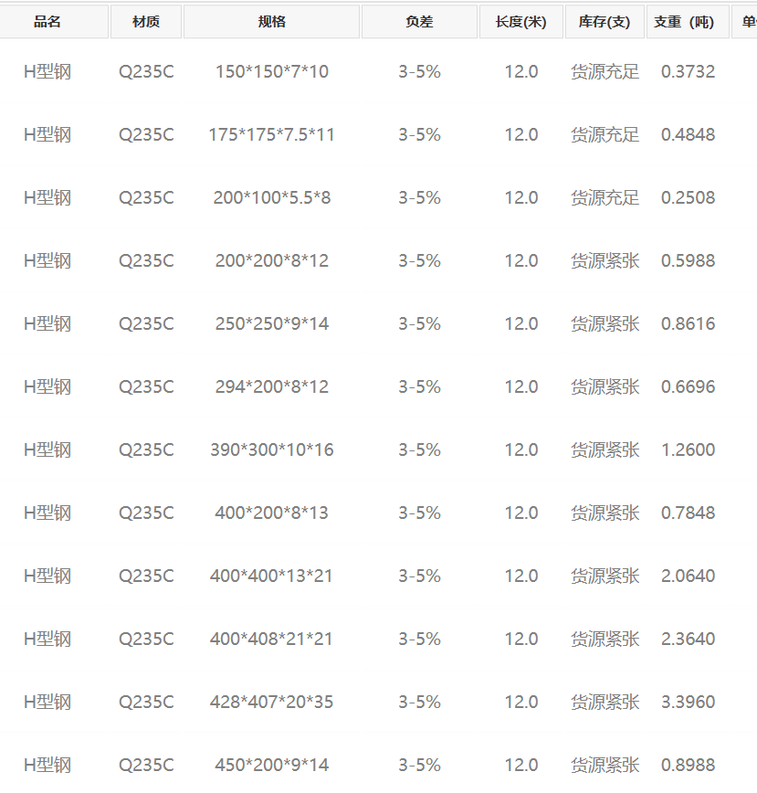 型材知識 您當(dāng)前位置:首頁 / 型材知識 / Q235CH型鋼規(guī)格現(xiàn)貨表