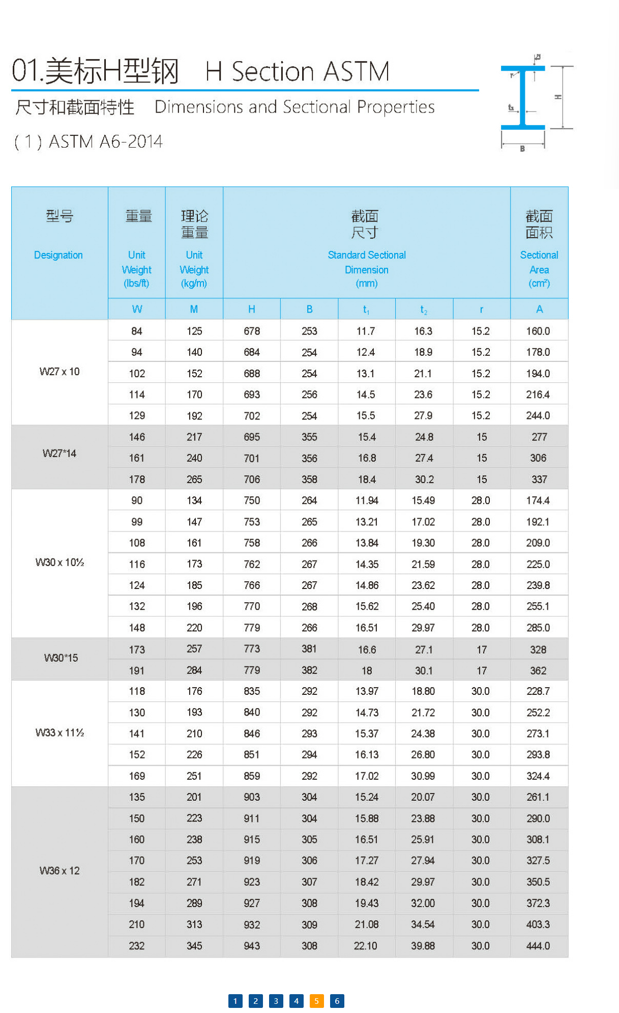 / 型材知識 / 美標A992-H型鋼尺寸重量表